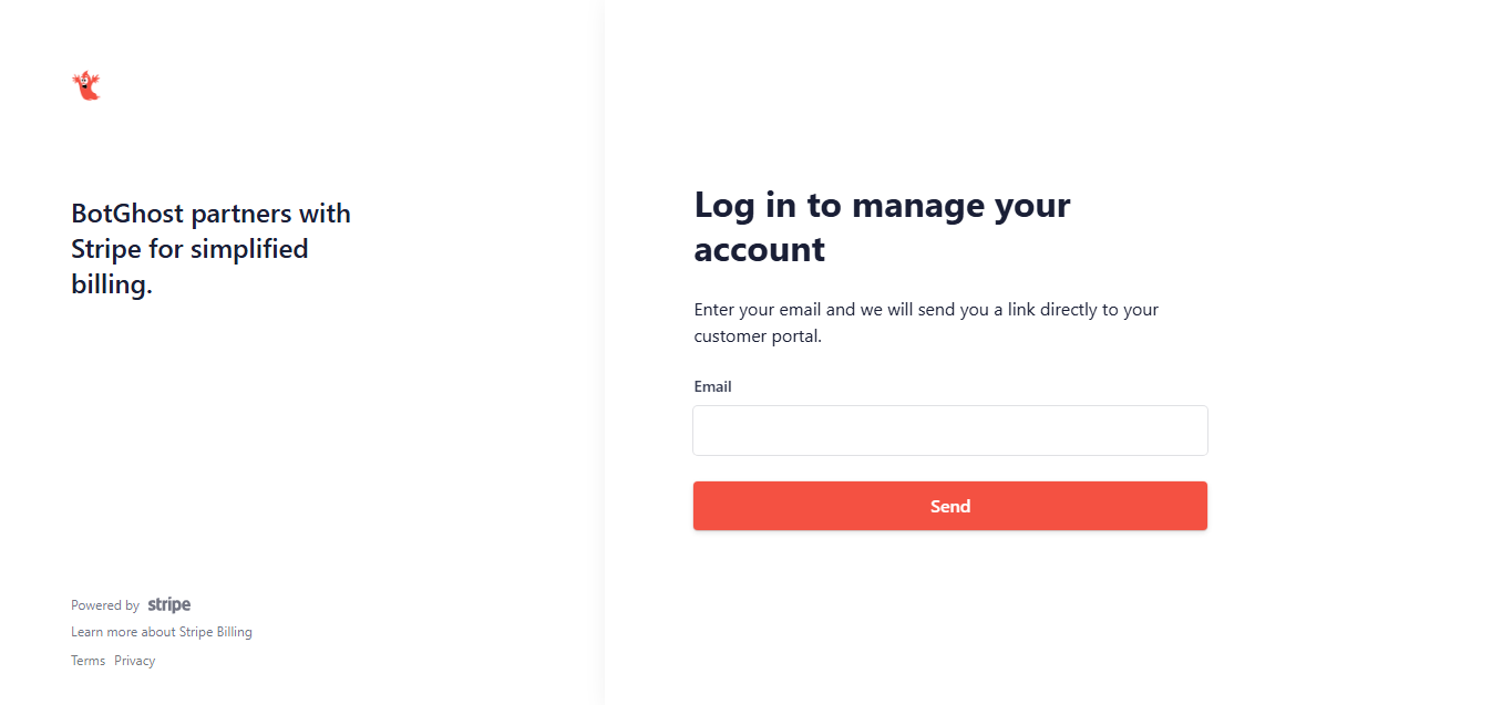 - Enter the email address associated with your BotGhost subscription to log in.