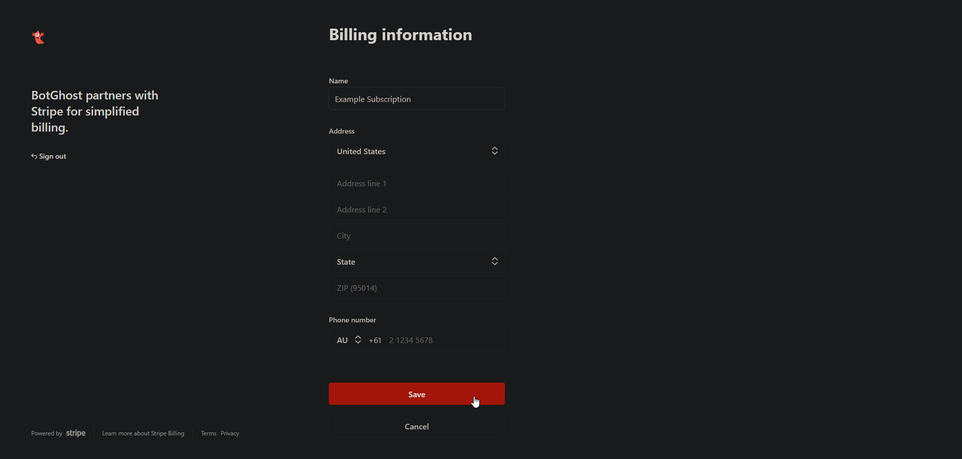 4. Follow the prompts and Input your updated billing information. Once complete, click Save to save your updated information!